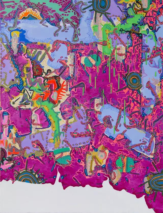 在《溫室效應》中,藝術(shù)家回到地球和生命起源,想象宇宙大爆炸的高溫環(huán)境,一切始于混沌。“有物混成,先天地生”,“吾不知其名,強字之曰:道。” 藝術(shù)家傅志剛用爆炸性的色彩呈現(xiàn)《道德經(jīng)》的精髓,即世界就是一個混沌體。