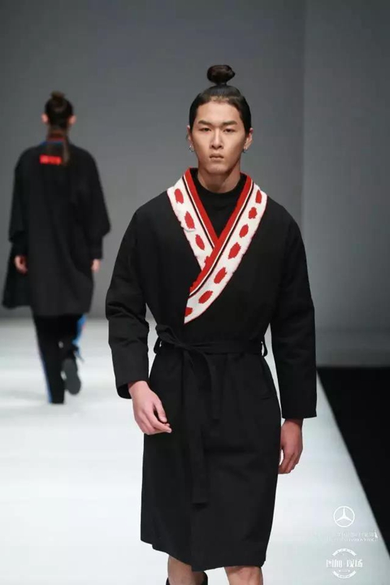 設(shè)計師吳煥然從藝術(shù)家的宇宙觀出發(fā),回歸中國文化本源,解讀道家思想與藝術(shù)時尚的融合。本次秋冬系列以中國紅、黑、白為核心配色,摘選漢服中的交領(lǐng)右衽、褒衣廣袖、系帶隱扣等元素,進行時尚化改造。縱觀中國國際時裝周,這種中國原創(chuàng)和東方美學賦予了時尚獨特的氣質(zhì),從單純的服裝展示進入文化輸出。