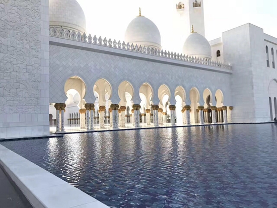 中東最大的清真寺---扎耶德清真寺 ,宏偉莊嚴(yán) ,富麗高雅。(華奎攝影)