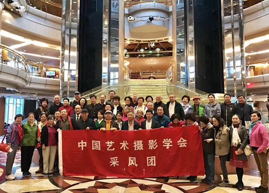 中國藝術(shù)攝影學(xué)員采風(fēng)團(tuán)在“海洋神話”郵輪上合影