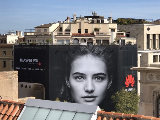 在巴塞羅那中心街區(qū),高迪的建筑杰作巴特婁宮屋頂看到中國“華為”旗艦店的整墻巨型廣告,心中為之一震(華奎攝影)