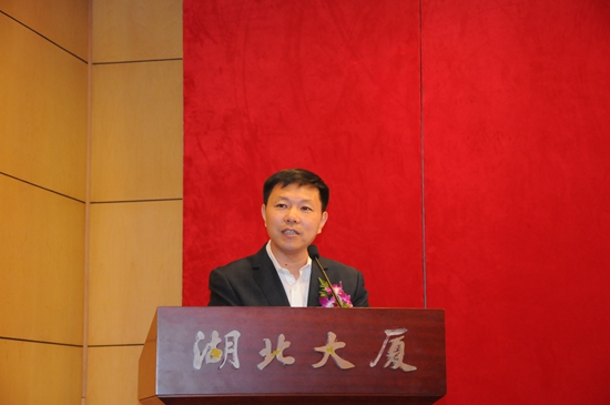 隨州企業(yè)代表、中國品牌管理研究中心主席王漢武在商會成立儀式上發(fā)言
