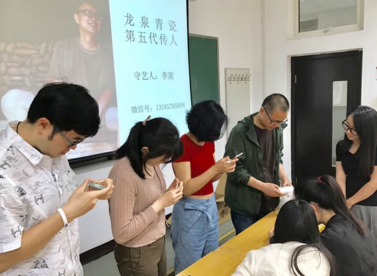據(jù)悉,李震教授為了弘揚青瓷文化和非遺傳承,先后應邀在中國國家圖書館、北京大學、清華大學、人大附中等單位進行過演講和學術(shù)講座,反響強烈,這次來到中國人民大學藝術(shù)學院為在職碩士研究生授課也正是這位大國工匠不斷踐行"青瓷夢"的人生追求。