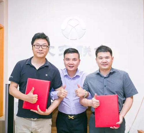 從左至右依次為光簡董事長王國豪、文交聯(lián)合副總裁銀志、文交聯(lián)合總裁銀普