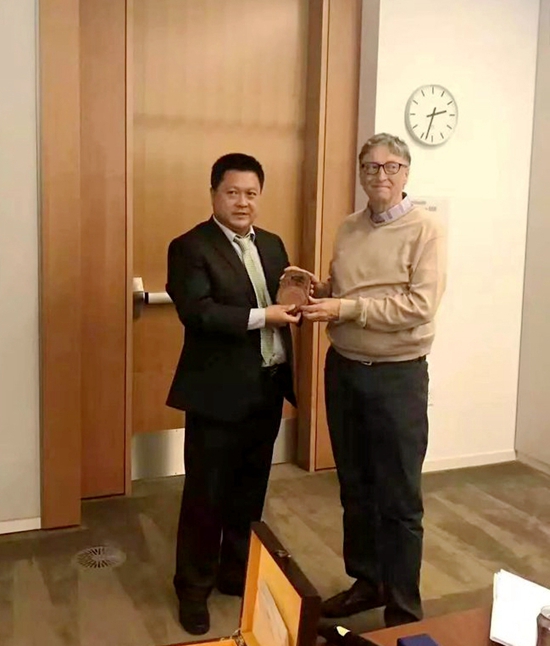 期間山東省政協(xié)常委 東方匯泉集團(tuán)董事局主席 東方君公益基金會(huì)會(huì)長 中華炎黃文化研究會(huì)硯文化聯(lián)合會(huì)常務(wù)副會(huì)長董方軍先生贈(zèng)送給比爾、蓋茨先生一方由中華炎黃文化研究會(huì)硯文化聯(lián)合會(huì)會(huì)員,全國首界中華硯雕師 齊增升雕刻的青州紅絲硯《上善若水》!