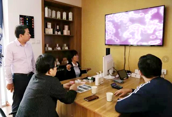 隨后,徐迪旻館長、徐志鵬董事長等人來到世屹文化線下生活體驗(yàn)館——期茶堂進(jìn)行參觀體驗(yàn),在徐志鵬董事長陪同下,徐迪旻館長相繼進(jìn)行了血液檢測(cè)、9D氣血檢測(cè)以及古方蒸倉體驗(yàn),并對(duì)期茶堂的健康產(chǎn)業(yè)發(fā)展表示肯定認(rèn)可。