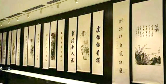 在世屹文化總部展覽室,徐志鵬董事長向徐迪旻館長介紹了世屹電商上線藝術(shù)品:世界易經(jīng)風(fēng)水大師黃道親筆“福”字,國禮紫砂藝術(shù)館館長汪成瓊先生親制《一帶一路紫砂杯》以及張大千大師三幅畫作《仿宋人花鳥》、《鳳簫圖》和《魚籃大士像》。徐迪旻館長在品畫中談及了張大千得名的由來、中國畫的透視構(gòu)圖及中國畫鑒賞方式。