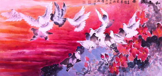 筆墨當(dāng)隨時代,何秋靜先生是一位善于觀察生活,用畫筆深入社會、記錄生活的藝術(shù)家;其作品氣象郁勃,清新自然,筆法靈活多變,水韻墨彰,作品《和平署光》、《和平盛世》氣勢宏大,深沉厚重,作者用文思與詩意贊頌盛世中國蒸蒸日上的繁榮景象,用筆墨描繪億萬人民生活和諧富強、前程似錦的向往之情,反映了作者作為一名藝術(shù)教育家用筆墨記錄時代傳遞文化馨香與祖國深沉的愛。