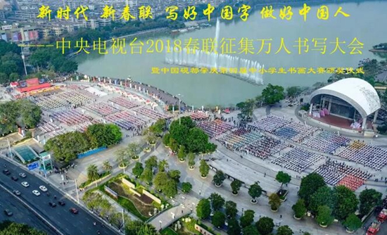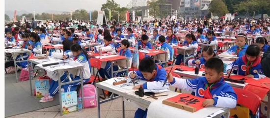 2017年12月23日上午,肇慶市龍禧小學(xué)選派的200名小書法家,參加主題為:“新時(shí)代,新春聯(lián),寫好中國(guó)字,做好中國(guó)人”中央電視臺(tái)2018春聯(lián)征集萬(wàn)人書寫大會(huì),在全國(guó)政協(xié)常委、中國(guó)書法家協(xié)會(huì)主席蘇士澍及其100名中國(guó)書協(xié)理事帶領(lǐng)下,與肇慶市13000多名中小學(xué)生現(xiàn)場(chǎng)揮毫潑墨,國(guó)家首批重點(diǎn)風(fēng)景名勝區(qū)--七星巖牌坊廣場(chǎng)翰墨飄香、氣勢(shì)恢宏。