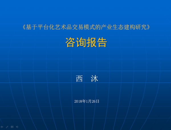 《基于平臺化藝術(shù)品交易模式的產(chǎn)業(yè)生態(tài)建構(gòu)研究》咨詢報告反饋過程中,圍繞一個定位:文化藝術(shù)消費平臺;三條主線:一是平臺——交易模式創(chuàng)新——產(chǎn)業(yè)體系,二是潛在客戶——平臺客戶——平臺消費客戶——平臺消費商,三是產(chǎn)品——市場——產(chǎn)業(yè)——產(chǎn)業(yè)生態(tài),重點強調(diào)了以下幾個部分:世屹文化探索面對的基本背景,世屹文化探索面對的基本共識,研究與實踐的現(xiàn)狀,研究與實踐過程中的問題,基于平臺化藝術(shù)品交易模式的產(chǎn)業(yè)生態(tài)建構(gòu)發(fā)展的基本趨勢,世屹文化探索要解決的目標(biāo)與定位,世屹文化探索基于平臺化交易的產(chǎn)業(yè)生態(tài)邏輯,世屹文化探索的藝術(shù)品消費平臺結(jié)構(gòu),世屹文化探索的消費平臺產(chǎn)品,世屹文化探索消費平臺產(chǎn)品的管理,世屹文化探索消費平臺的運營,世屹文化探索需要注意的問題,對策與建議等。世屹文化專注于多產(chǎn)業(yè)共融、協(xié)同發(fā)展的文化消費平臺建設(shè),涵蓋文化、公益、健康、體育等多個產(chǎn)業(yè)領(lǐng)域。當(dāng)前,隨著國家“一帶一路”倡議和“以文化產(chǎn)業(yè)作為國民經(jīng)濟(jì)支柱產(chǎn)業(yè)”戰(zhàn)略的全面鋪展,文化產(chǎn)業(yè)愈發(fā)受到社會關(guān)注。創(chuàng)新建構(gòu)的“世屹電商”新模式,是世屹文化順應(yīng)國家大力支持文化產(chǎn)業(yè)發(fā)展的重要一步,基于文化產(chǎn)業(yè),致力于以大數(shù)據(jù)滿足客戶和供應(yīng)商需求,打造綜合性產(chǎn)業(yè)消費平臺的“世屹電商”新模式,構(gòu)建起了“商品交易平臺+會員大數(shù)據(jù)+創(chuàng)新零售+實體經(jīng)濟(jì)+產(chǎn)業(yè)鏈金融”的共享經(jīng)濟(jì)生態(tài)圈模式。這種模式,正得到越來越多人的認(rèn)可。我們期望,以這次課題研究為契機,能進(jìn)一步完善世屹文化的平臺化建構(gòu),進(jìn)一步提升共享經(jīng)濟(jì)生態(tài)的結(jié)構(gòu)與效率,為世屹文化領(lǐng)跑行業(yè)的創(chuàng)新發(fā)展進(jìn)一步明確定位,聚焦優(yōu)勢,創(chuàng)新機制,提供新的發(fā)展動能。