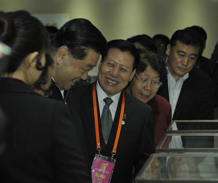 賈慶林主席興趣盎然地觀看了上百件硯臺展品,不時與專家學者進行交流。在隨后舉行的座談會上,賈主席暢談了他對硯臺文化歷史發(fā)展的認識,朗誦了歷代名家贊美中華硯臺的詩篇,贏得了陣陣掌聲。