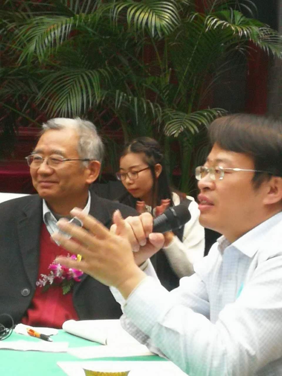 吳鳴和西安財(cái)經(jīng)大學(xué)文藝系教授沈奇在研討會(huì)上