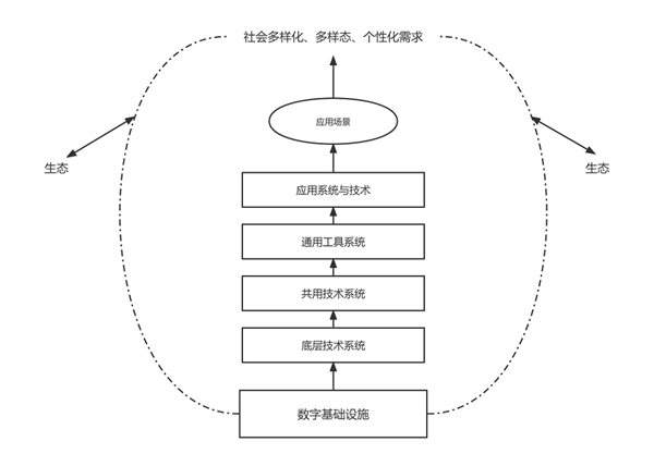 其次,數(shù)字化。數(shù)字化是信息化發(fā)展的結(jié)果。隨著數(shù)字化新技術(shù)進入到大眾視野,數(shù)字化的底層邏輯也在無形之間改變了社會形態(tài)、意識形態(tài)和經(jīng)濟形態(tài)。微觀而言,人們的工作流程、實踐和思考模式發(fā)生根本性的改變,宏觀來看,社會治理、體系建構(gòu)、經(jīng)濟運行的要素運轉(zhuǎn)、深層機制發(fā)生了變革。數(shù)字化促進了主體的開放性、連通性與參與性,實現(xiàn)了數(shù)據(jù)的要素化,推動了以數(shù)字資產(chǎn)為核心的數(shù)字經(jīng)濟的發(fā)展邏輯架構(gòu)與體系,最重要的是通過技術(shù)手段的改變,更新了原來的固有邏輯,形成了新的數(shù)字經(jīng)濟形態(tài)的趨勢和發(fā)展要點。以數(shù)字化為底層邏輯形成的數(shù)字基礎(chǔ)設(shè)施,進而形成了底層技術(shù)系統(tǒng),克服了傳統(tǒng)意義上的數(shù)據(jù)分析、集存、利用、場景等問題,將數(shù)據(jù)要素在生產(chǎn)各個環(huán)節(jié)利用更為高效全面,實現(xiàn)數(shù)字化邏輯的全方位應(yīng)用和社會數(shù)字化轉(zhuǎn)型大眾化。根據(jù)馬克思的勞動生產(chǎn)力理論,科學(xué)技術(shù)的進步推動生產(chǎn)力的發(fā)展,生產(chǎn)力通過生產(chǎn)關(guān)系作用于社會,引發(fā)人們消費、生產(chǎn)的變化。技術(shù)背后的底層邏輯會從機制層面進行驅(qū)動,生發(fā)出不同的數(shù)字化形態(tài),產(chǎn)生了與之適配的更加多元化的經(jīng)濟與社會生活方式,數(shù)字化就是在這樣的環(huán)境下進入到大眾視野與生活的。