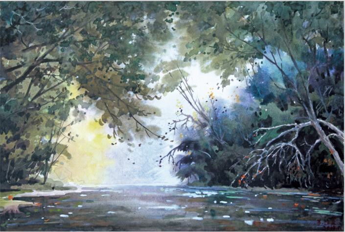 水彩畫是由西方傳入我國(guó)的一個(gè)畫種,也是繪畫中的一個(gè)種類,隨著中西文化的不斷交融,水彩畫的創(chuàng)作也開(kāi)始不斷呈現(xiàn)出新的形式,并且其藝術(shù)語(yǔ)言也逐漸呈現(xiàn)出多樣性。以水彩為媒介的風(fēng)景畫,因其特有的繪畫語(yǔ)言展現(xiàn)出的是迷人的審美價(jià)值,歷來(lái)為許多藝術(shù)家所鐘情。而中國(guó)當(dāng)代的水彩畫藝術(shù),在中西文化相互碰撞的語(yǔ)境中不斷發(fā)展的同時(shí),也面臨著傳承與創(chuàng)新,融合與突破的多重選擇。如何在借鑒與融合中積極吸取中國(guó)傳統(tǒng)的繪畫意韻,以挖掘和拓展水彩畫的獨(dú)特表現(xiàn)力,蘇仕元先生做了長(zhǎng)期的摸索與探究。在長(zhǎng)期的藝術(shù)實(shí)踐與人文滋養(yǎng)中,逐漸形成了其清新明朗、水色通明的藝術(shù)風(fēng)格。