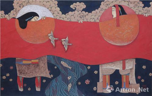 計(jì)美赤列:大學(xué)畢業(yè)之后,我基本上還是按照油畫的寫實(shí)方法畫了一批畫,也參加了當(dāng)時(shí)的首屆中國(guó)少數(shù)民族畫展,但那時(shí)我的繪畫風(fēng)格并沒有形成,風(fēng)格的形成是在1984年。1984年到1985年,我的中央美院進(jìn)修,那時(shí)我是有意識(shí)的學(xué)內(nèi)地的工筆重彩。通過在央美的訓(xùn)練,在寺廟對(duì)壁畫的學(xué)習(xí),以及后來(lái)同六七個(gè)畫家在新疆阿里學(xué)習(xí)傳統(tǒng)的繪畫技法,積淀了這么久之后開始慢慢尋找到自己適合的繪畫風(fēng)格。