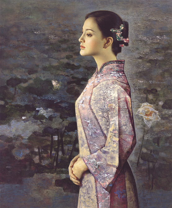 謝楚余筆下的女子多為現(xiàn)代女性,背景為室外自然風景,女子神態(tài)平靜、空靈,纖塵不染。很多人評價謝楚余的畫“唯美、典雅、高貴、細致”。有人說漫步在謝楚余的油畫世界,滿目芳華,飄逝的風云,流逝的水,萋萋芳草,絕代佳人,仿佛是昨宵玲瓏的夢,是人類對美永恒的追溯。在謝楚余的作品中,處處才情飛揚處處嚴格有序地被規(guī)范著,他那多年的探索和實踐,形成了精致而嚴謹、典雅而洗練的繪畫風格。