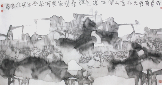 藝術(shù)需要創(chuàng)新,創(chuàng)新需要勇氣,藝術(shù)家的氣勢,在乎潑灑的豪邁,在乎淋漓致盡。省去了過多的勾挑皴揉,融進了更多彩墨的成分和想象。