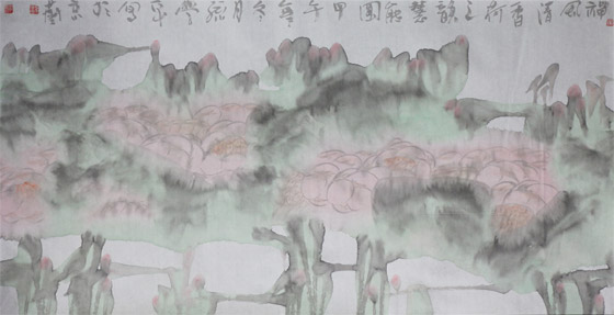 清晨揚了一束雨,潤物如酥,細(xì)悠悠地帶著清新的氣息,蓮葉田田的繁復(fù)中,忽然擎過一縷清風(fēng),分出好幾樣層次,透出好幾種味道——這就是畫家孫學(xué)平作品給人的最初印象。