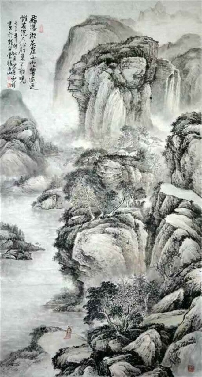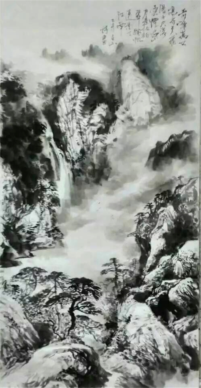 楊占山的繪畫作品以雄渾滄桑的山河畫卷為素材,用厚重的筆墨,寫盡我國(guó)大好河山的崢嶸與靈秀,在煙雨蒙蒙、斜陽(yáng)夕照中,用粗獷的筆墨、展現(xiàn)大山渾厚和滄勁;給人以穿越心靈的震撼和油然而發(fā)的豪情。作品縱橫奔放,墨氣淋漓,剛勁多變而趣味盎然,深得寫意畫之精髓。筆墨在他眼中猶如龍歸大海一般,更像是積蓄已久的火山,精氣神全部灌注在筆下,流露在墨中,傾泄在宣紙之上,創(chuàng)作出一幅幅展現(xiàn)祖國(guó)大好河山的錦繡畫卷。畫家楊占山的山水畫作品,線條縱橫老辣,蒼勁有力,墨韻淋漓盡致。畫面上山巒起伏,林木茂盛,地勢(shì)險(xiǎn)峻,霧靄彌漫。溪谷間瀑布如練,流水湍急,翻滾的波濤從山谷深處奔涌而來,傾瀉而下,形成幽深的潭水。水面上舟楫飄蕩,更使畫面充滿了生機(jī)。