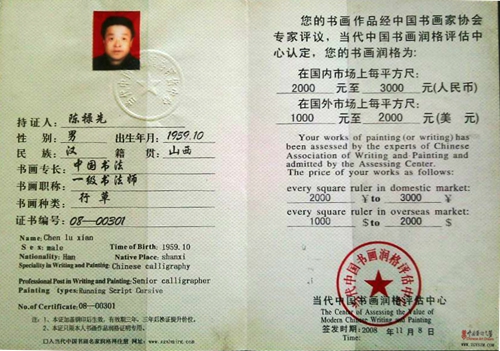 陳祿先,男,生于1959年,山西山陰縣人,F(xiàn)為中國書畫家協(xié)會理事;中國老年書畫研究會會員;山西省老年書畫家協(xié)會會員;朔州市蘭亭書畫院院士;中國書畫創(chuàng)作院高級書法師;河南名家書畫藝術(shù)研究學(xué)會客座教授。