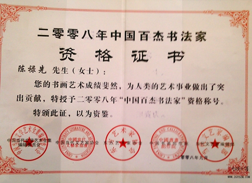 “中國百杰書法家” —陳祿先