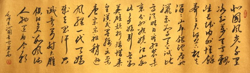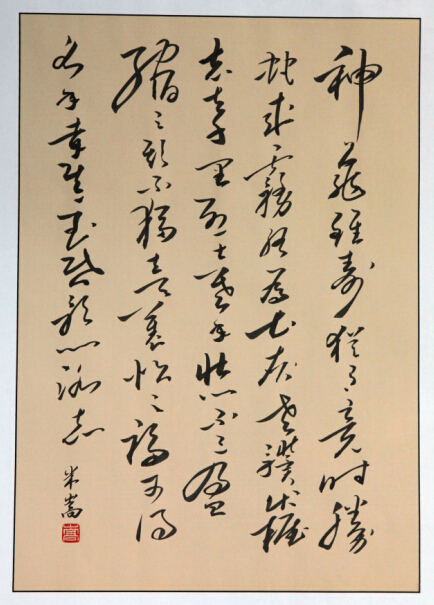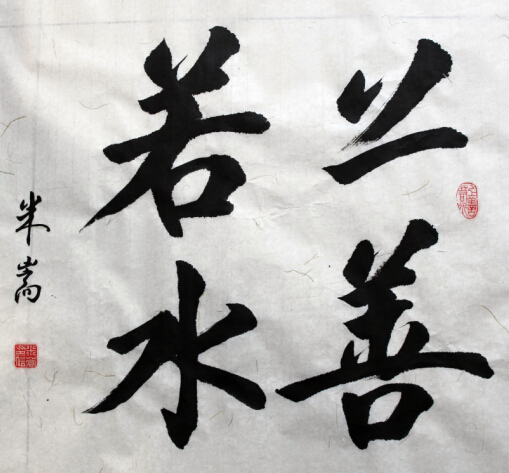 米嵩先生多年來習古不泥,兼收并蓄。作品創(chuàng)作中,集眾家之長,融八方之勢,追求勁健中見娟秀,豪放中顯淑靜的清朗書風。其作品清麗灑脫,神形俱佳。用筆勁健舒展,點畫遒媚相生;結(jié)字欹側(cè)多姿,造型玉質(zhì)金相;章法疏密右致,通篇意韻生動。作品透出一股雄姿英發(fā)、神采飛揚的氣質(zhì),既具有清逸典雅的魏晉風骨,又具熱烈奔放的現(xiàn)代豪情。給觀者帶來一種遒美的視覺享受。