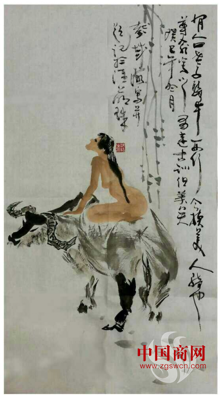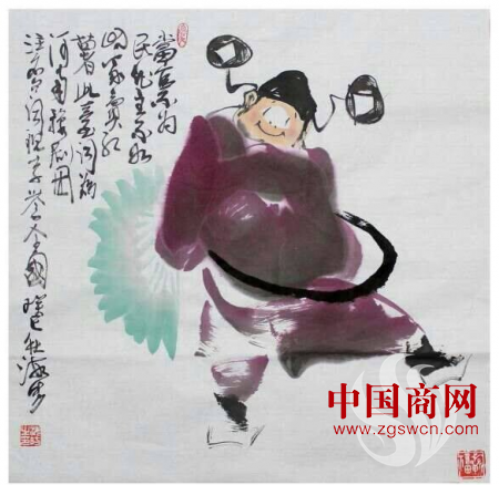 趙海昉的書(shū)畫(huà)藝術(shù)源于生活,寓于自然,既尊傳統(tǒng),又主創(chuàng)新,長(zhǎng)于寫(xiě)意人物花鳥(niǎo),以書(shū)法如畫(huà),筆力敦厚老辣,縱橫恣肆,氣勢(shì)或雄強(qiáng)或詼諧自成風(fēng)格,章法布白,虛實(shí)相生,主題突出,用色對(duì)比鮮明。在為著名豫劇藝術(shù)家牛得草先生臺(tái)詞“當(dāng)官不為民做主,不如回家賣(mài)紅薯”作畫(huà)中,就大膽寫(xiě)意用筆強(qiáng)烈著色,形成強(qiáng)烈視覺(jué)沖擊效果,強(qiáng)化對(duì)主題的把握。對(duì)《六祖壇經(jīng)》“菩提本無(wú)樹(shù),明鏡也非臺(tái);本來(lái)無(wú)一物,何處惹塵埃。”這首偈語(yǔ)的畫(huà)意表現(xiàn)中,構(gòu)圖留白恰當(dāng),書(shū)畫(huà)一體和韻,禪意十足,意境超凡,極具品味。東坡先生說(shuō)“出新奇于法度之中”,海昉老師過(guò)人之處恰在這種適度的把握,所以才能隨意潑灑間也是古意盎然,氣息充盈,干凈高雅,富有韻致的佳作。