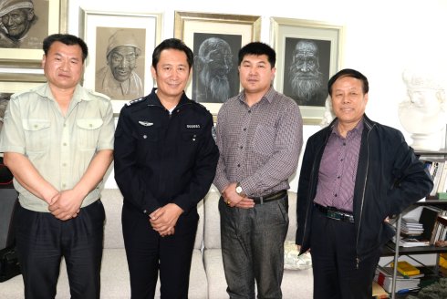 2015年5月2日下午,也就是五一國(guó)際勞動(dòng)節(jié)公休假第二天。 濟(jì)南軍區(qū)聯(lián)勤部大校、軍創(chuàng)網(wǎng)創(chuàng)始人辛福義 ,中國(guó)泰山書畫院院長(zhǎng)薛文明和中國(guó)擁軍新聞人物聯(lián)盟副秘書長(zhǎng)、軍創(chuàng)網(wǎng)文化總監(jiān)李法明,受到了山東省公安廳刑偵局物證鑒定中心視聽(tīng)室一級(jí)警督、高級(jí)工程師、著名模擬畫像專家林宇輝的熱情接待,舍棄休息接受采訪,林宇輝表示將大力支持“泰山德藝雙馨”書畫名家評(píng)選活動(dòng)面向全國(guó)各地陸續(xù)展開的征稿采編工作與活動(dòng)。我們深受感動(dòng)!