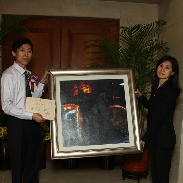 中華世紀(jì)壇世界藝術(shù)館收藏于江光影平面油畫作品,館長為于江先生頒發(fā)收藏證書