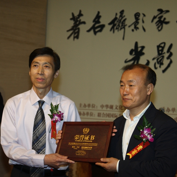 國際生態(tài)安全合作組織李相基將軍為于江頒發(fā)榮譽證書