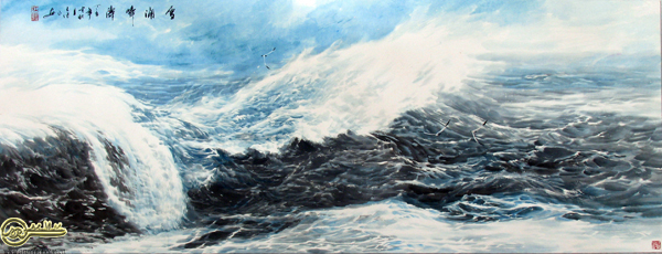 繼良先生是傳統(tǒng)中國(guó)畫(huà)的集大成者,他對(duì)山水、花鳥(niǎo)、人物無(wú)所不精,無(wú)所不能,早在青少年時(shí)代他就拜師于溥松窗、周懷民名下,他除了對(duì)老師的作品心追手摹外還以最大的力度打進(jìn)傳統(tǒng),把繪畫(huà)的觸角伸向晉唐宋元,沉潛在各家各派的繪畫(huà)樣式中吸收著藝術(shù)的維他命,尤其是對(duì)何海霞大師教導(dǎo)要向生活討靈感更是體會(huì)有加,他一面外師造化中得心源,一面注重讀萬(wàn)卷書(shū),行萬(wàn)里路,搜盡奇峰打草稿,并努力在傳統(tǒng)和現(xiàn)代,東方和西方,潑和寫(xiě),象和意的對(duì)立統(tǒng)一中做到了出和入的辯證超越。這種量的累積最終象涓涓細(xì)流經(jīng)年累月奔流不息匯合而成大江大海,并最終把藝術(shù)追求定位在大海的描繪上,他也同時(shí)把所有的激情都傾注在對(duì)大海的觀(guān)察、體會(huì)、感受、耕耘,研究上,兼容并蓄,大膽創(chuàng)新,用筆簡(jiǎn)明流暢、章法考究規(guī)范、刻畫(huà)細(xì)致真切意蘊(yùn)深遠(yuǎn)。無(wú)論是謀篇造勢(shì)還是筆墨渲染都顯示出其嫻熟的藝術(shù)功力。