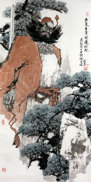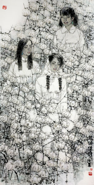 在風(fēng)格歸類上,閻真先生的國(guó)畫可以說是一種具有現(xiàn)代意味的兼工帶寫。說其為現(xiàn)代意味,是因?yàn)樗c傳統(tǒng)的兼工帶寫又有不同,這是一種具有人性又帶有現(xiàn)代精神含義的國(guó)畫藝術(shù)樣式。欣賞他的繪畫給人視覺上一種全新的藝術(shù)享受,他的畫能觸動(dòng)人的心靈深處,引起讀者的共鳴。在先生的作品中有一種表達(dá)方法十分引人注意,這就是大塊黑色的運(yùn)用。這種大塊黑色有時(shí)是和形結(jié)合的,有的則游離于物象而獨(dú)立存在著。這種游離于物象而獨(dú)立存在的黑色團(tuán)塊在形式上的意義很值得分析。
