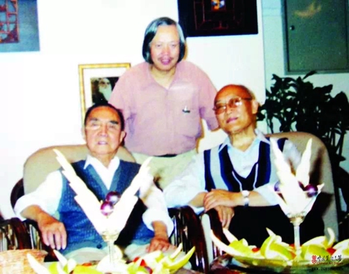 李代遠(yuǎn)(中)與張大千先生弟子、著名國畫家龍國屏(左)王永年(右)兩位大師合影