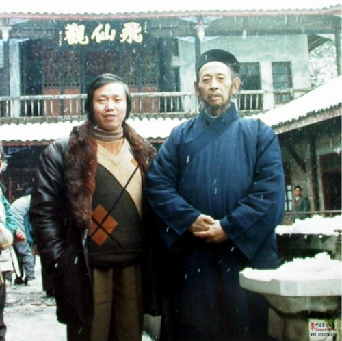 1995年李代遠(yuǎn)(左)與其道學(xué)恩師、全國政協(xié)常委、中國道協(xié)會長傅元天大師青城雪中合影