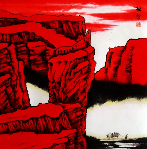 山水是詩人畫家抒寫情思的媒介,所以中國(guó)畫和詩,都愛以山水境界做表現(xiàn)和詠味的中心。中國(guó)畫最重山水,與意境說分不開。閆祖智山水畫面中傳達(dá)了他自身的特殊情感以及生命意識(shí),而這種深刻表現(xiàn)作者靈魂的山水畫圖式又是他復(fù)雜的、特殊的情感摧養(yǎng)出來的。