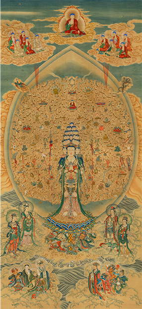 千手千眼觀世音菩薩絹本重彩尺寸-82×179-cm