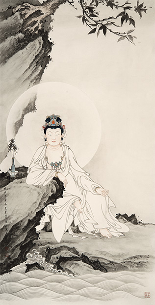 白衣觀音紙本淡彩尺寸-66×134-cm