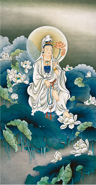持蓮觀音絹本重彩尺寸-45×90-cm
