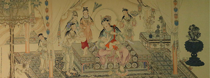 姨母育佛圖-絹本設(shè)色尺寸-180×54-cm