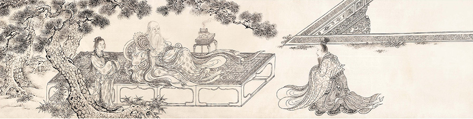 老子授經(jīng)圖-絹本白描尺寸-150×36-cm