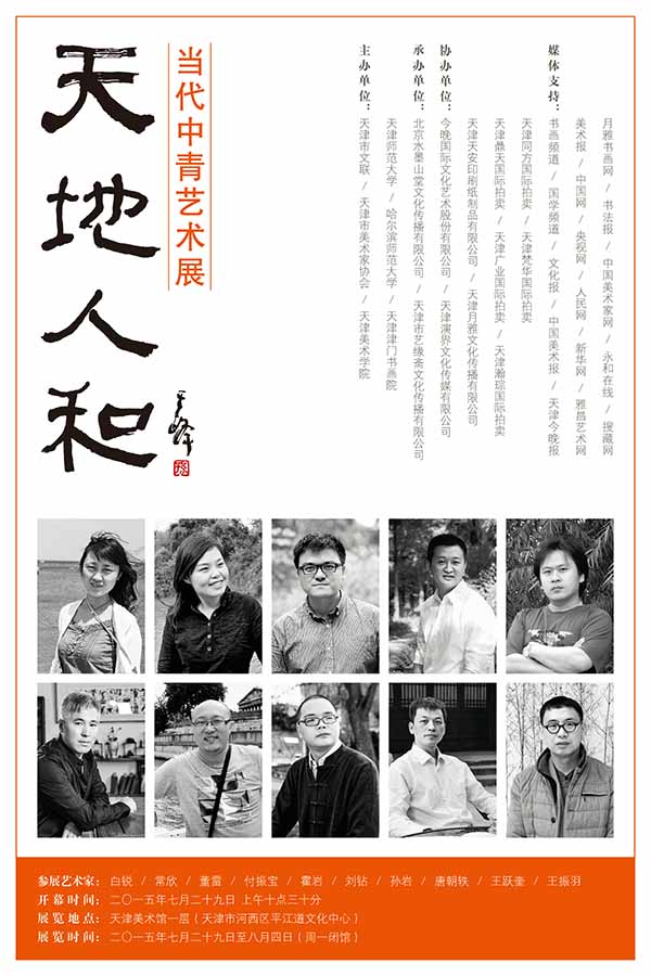 此次“天地人和”當(dāng)代中青年實(shí)力藝術(shù)展,匯集了十位當(dāng)代中青年實(shí)力藝術(shù)家作品,他們有一個(gè)共同的特點(diǎn)就是都在用他們的藝術(shù)創(chuàng)作,努力踐行“天地人和”的宇宙生存觀念,他們將天人合一的理念融入到藝術(shù)生命的整個(gè)過(guò)程,將“道法自然”的方法論融入到藝術(shù)探索的整個(gè)過(guò)程;他們不斷地改變著傳統(tǒng),不斷地改變著自己;他們是最富有創(chuàng)造力的一批人,也是最富有藝術(shù)激情的一批人;他們此次展出的作品視野開闊、意境深遠(yuǎn),表達(dá)了天地人和的大美境界,同時(shí)也表達(dá)了他們?cè)趯?duì)宇宙象變過(guò)程中的藝術(shù)探索,充分展現(xiàn)了他們以天地大美為靈魂的藝術(shù)理想。他們中大多畢業(yè)于國(guó)內(nèi)優(yōu)秀的藝術(shù)院校,有的則就業(yè)于專業(yè)美術(shù)創(chuàng)作單位,有的直接留在高校從事美術(shù)教育工作,借此展覽齊聚天津美術(shù)館,展現(xiàn)他們近年來(lái)潛心追求的精品力作,正是“天地人和”精神的集中體現(xiàn),展覽以此為題,旨在倡導(dǎo)一種追求自然和諧美好的藝術(shù)精神和價(jià)值取向。