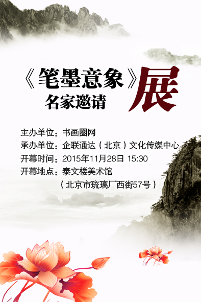 為了更進(jìn)一步弘揚(yáng)社會主義先進(jìn)文化,促進(jìn)文化事業(yè)發(fā)展和增進(jìn)中國書畫藝術(shù)交流,書畫圈網(wǎng)經(jīng)過精心籌劃,定于2015年11月28下午,在北京泰文樓美術(shù)館舉辦《筆墨意象》 名家邀請展。屆時,書畫圈網(wǎng)將邀請國內(nèi)具有藝術(shù)特色的書畫藝術(shù)大家進(jìn)行集中展出,以藝術(shù)的形式反映近年來各藝術(shù)大家的創(chuàng)作意境,通過舉辦這樣一次高規(guī)格畫展,進(jìn)一步營造良好的藝術(shù)氛圍。