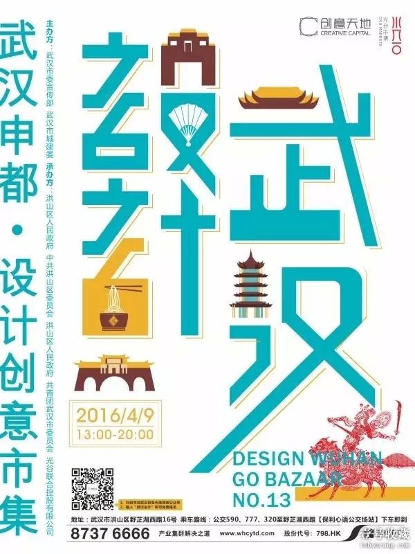 為申報“世界設計之都”營造良好的社會氛圍,提升武漢在創(chuàng)意設計領域的發(fā)展影響力。武漢創(chuàng)意天地即將舉辦“武漢·設計——2016武漢申都•設計創(chuàng)意市集”。 本次活動由市委宣傳部、市城建委主辦,中共洪山區(qū)委、洪山區(qū)人民政府、武漢創(chuàng)意天地承辦。這將會是武漢設計界的一次盛會,全方位涵蓋了建筑設計、服裝設計、珠寶設計、工業(yè)設計、室內(nèi)設計……等各領域。